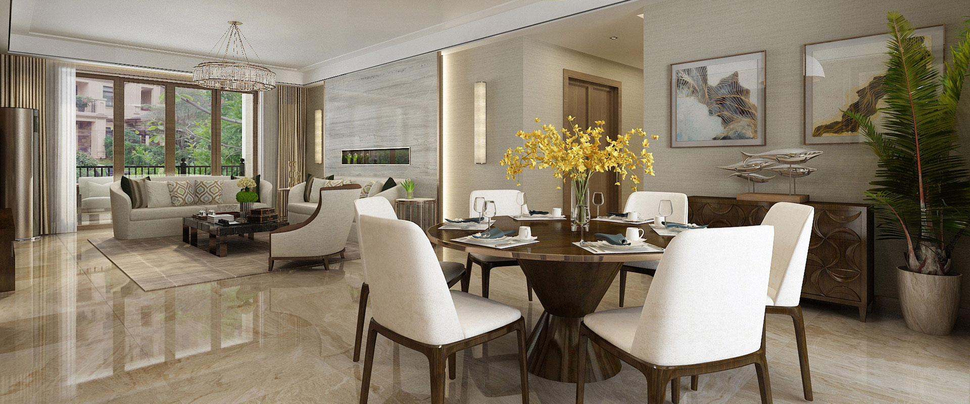 沙發(fā)將客餐廳分成兩個(gè)功能區(qū)域,家具配飾簡潔的造型、完美的細(xì)節(jié),營造出時(shí)尚前衛(wèi)的感···...