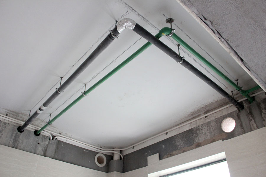 水管頂面排布、橫平豎直,用吊筋固定,熱水管及循環(huán)水管進(jìn)行保溫處理